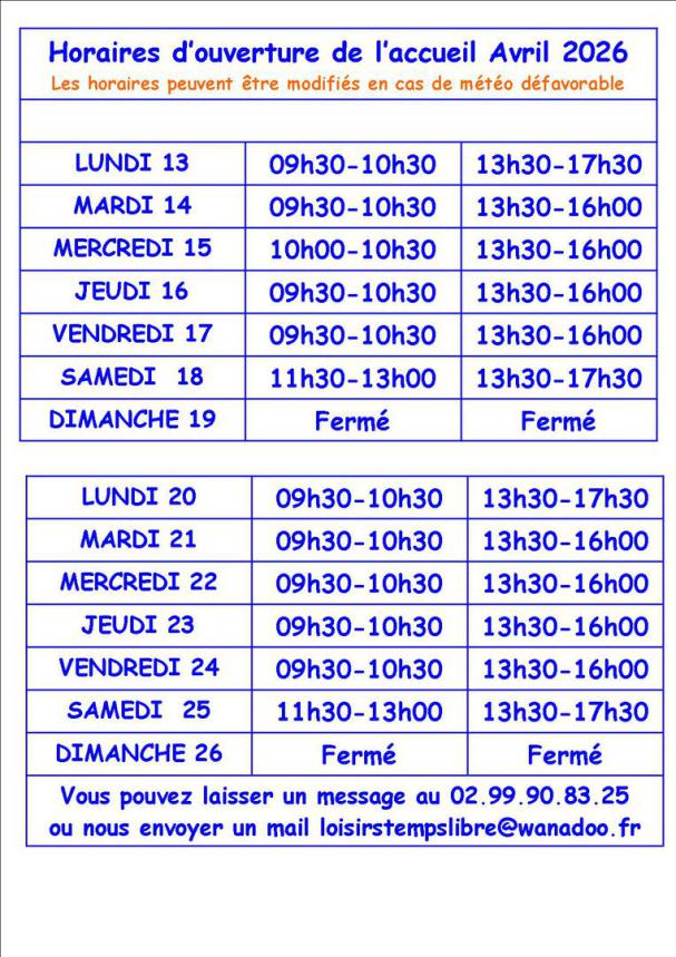HORAIRE D'OUVERTURE DE L'ACCUEIL